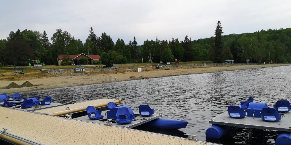 Les sentiers sont aussi le fun à explorer pour les enfants autant en vélo qu’à pieds. Il y a aussi un petit dépanneur tout rénové avec l’accueil toujours pratique pour des petits oublis. Le centre communautaire était fermé (covid) pendant notre séjour, mais je me rappelle que c’était cool dans le temps. On peut se rendre au centre-ville assez facilement (même en vélo) et aller profiter des beautés du lac au grand parc des Vétérans, avec une petite plage, des modules de jeu ainsi que des jeux d’eau.