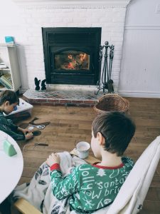Moi, j’adore m’installer auprès du feu pour lire ou tricoter avec une tisane le soir ou jouer au monopoly en famille avec des chandelles et un chocolat chaud le samedi matin… Douceur et bonheur assurés!