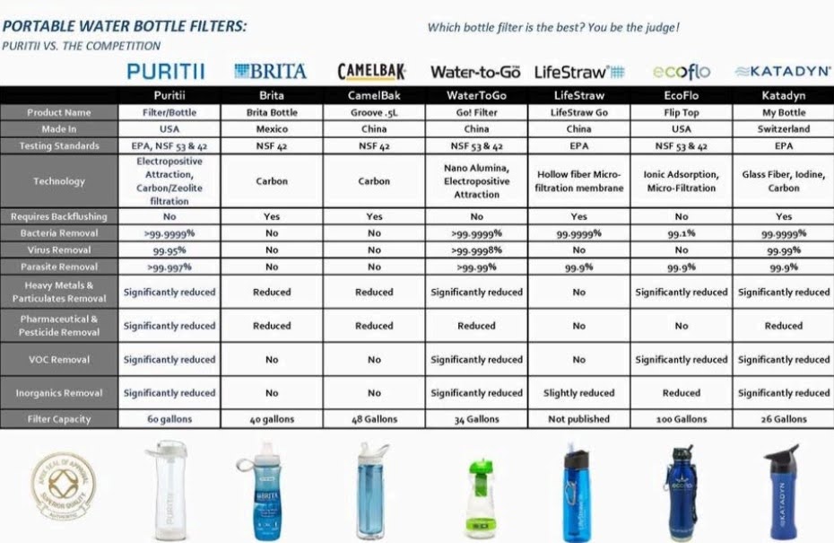des filtres et est exclusivement conçu par ARIIX. Avec ce système de filtration d’eau portable exclusif, profitez